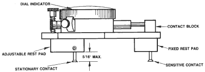 Raised 3 point location rest pads stand gage 1/2" off part to clear hubs, shafts, etc. |