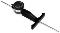 Minimum bore diameter with footed rod 11/32". Thickness of measuring foot .050". measuring rod diameter 5/32". Total inreach - adjustable 0-12". 3/4" x 4 3/4" hardened & ground measuring base. 1/2" measuring rod travel. Supplied with AGD Group 2 .0005" dial indicator with 1/2" travel & revolution counter, one footed rod, one plain rod & fitted storage case. (Shown with optional digital indicator.) |